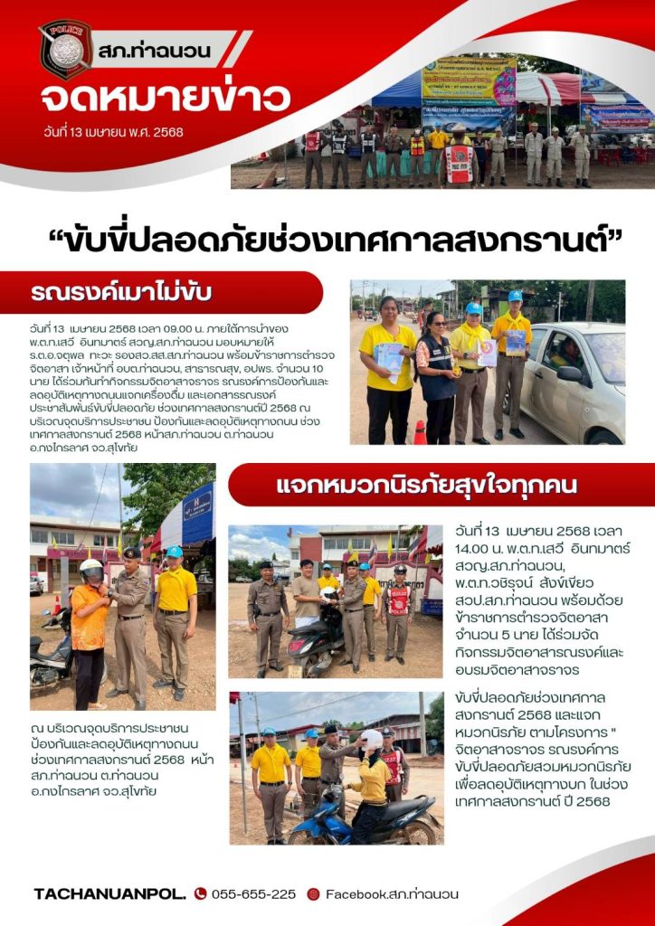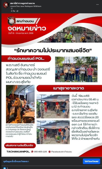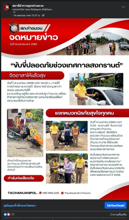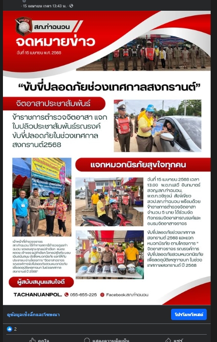 การประชาสัมพันธ์ เผยแพร่ทาง Facebook ทางเพจสภ.ท่าฉนวน